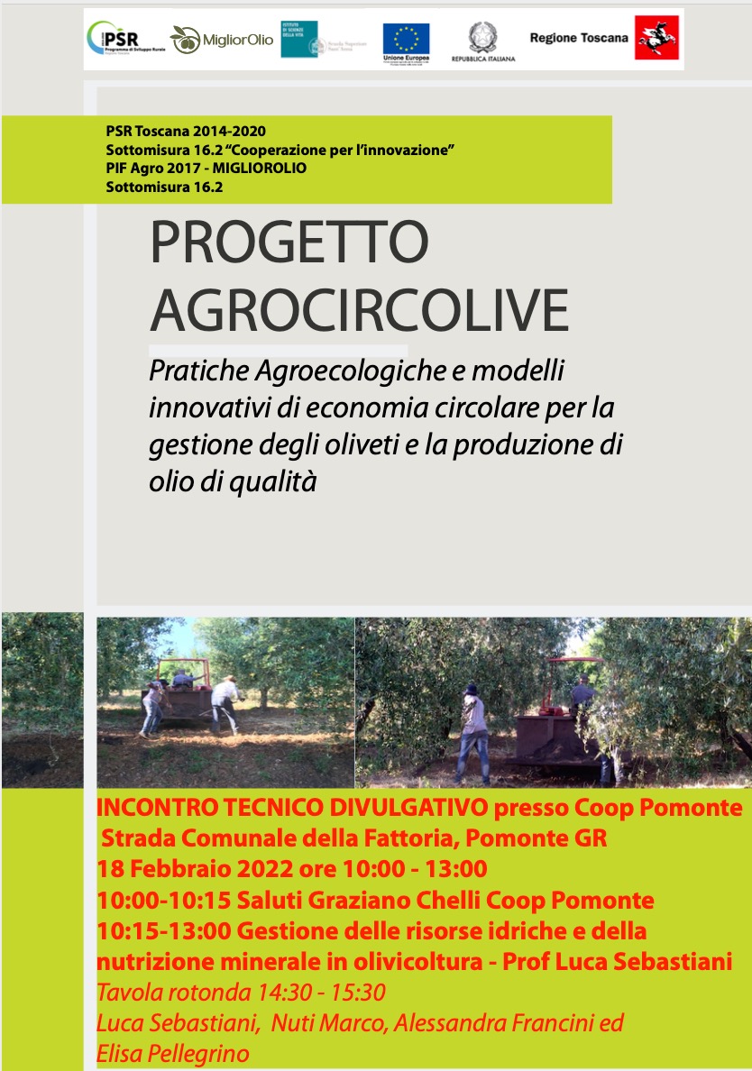 La giornata come da locandina rientra nelle attività del Progetto PSR Toscana 2014-2020 Sottomisura 16.2 Cooperazione per l’innovazione PIF AGRO 2017 Migliorolio – Sottomisura 16.2 Progetto Agrocircolive.